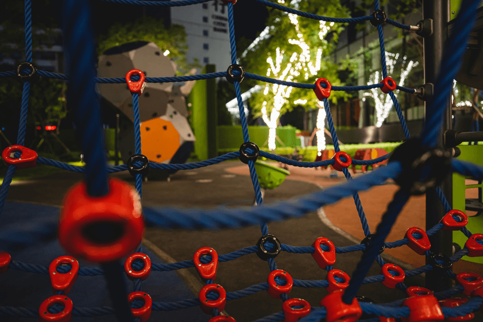這裡有色彩繽紛的攀岩牆,讓小朋友挑戰自我,鍛鍊體能與勇氣。滑梯區